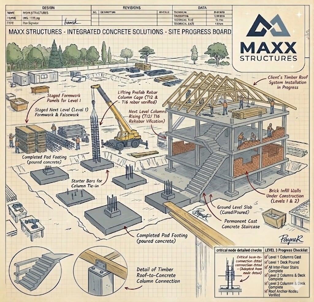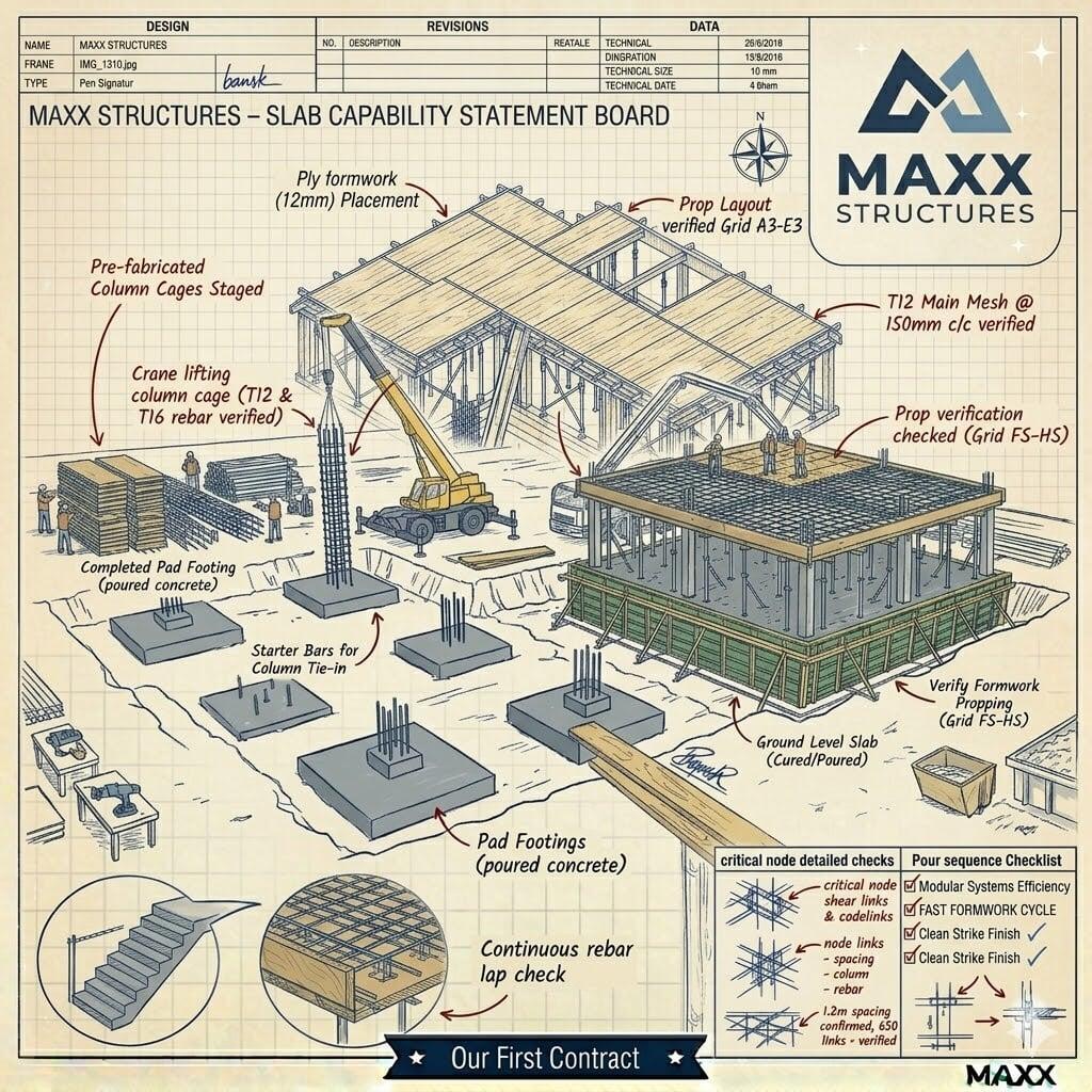 The Maxx Effect: We don't wait for a third-party steel fixer to show up before the formwork is finished. Our teams operate as a single unit, allowing us to move from shuttering to pouring faster than a fragmented site team could, getting the "structural backbone" finished ahead of schedule.