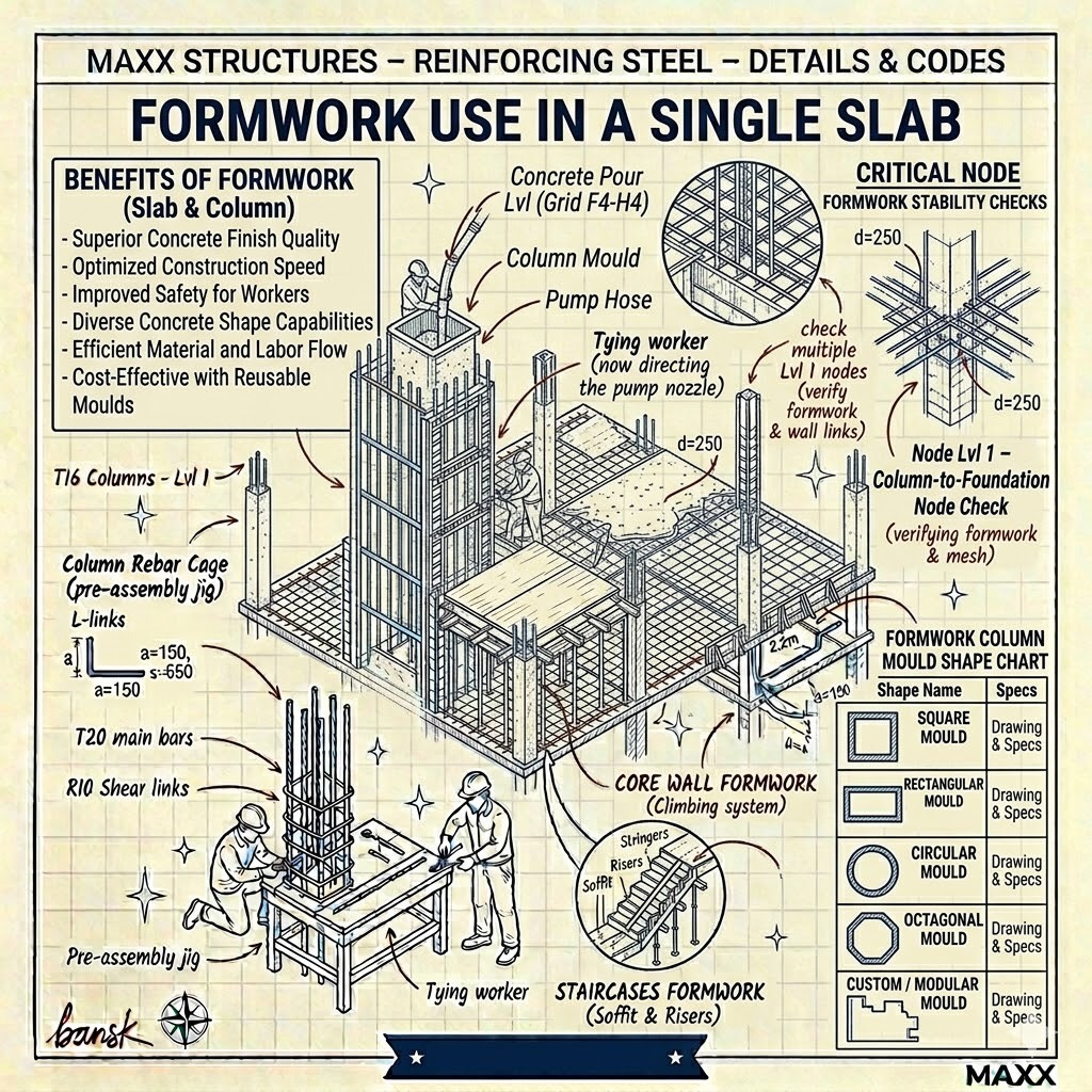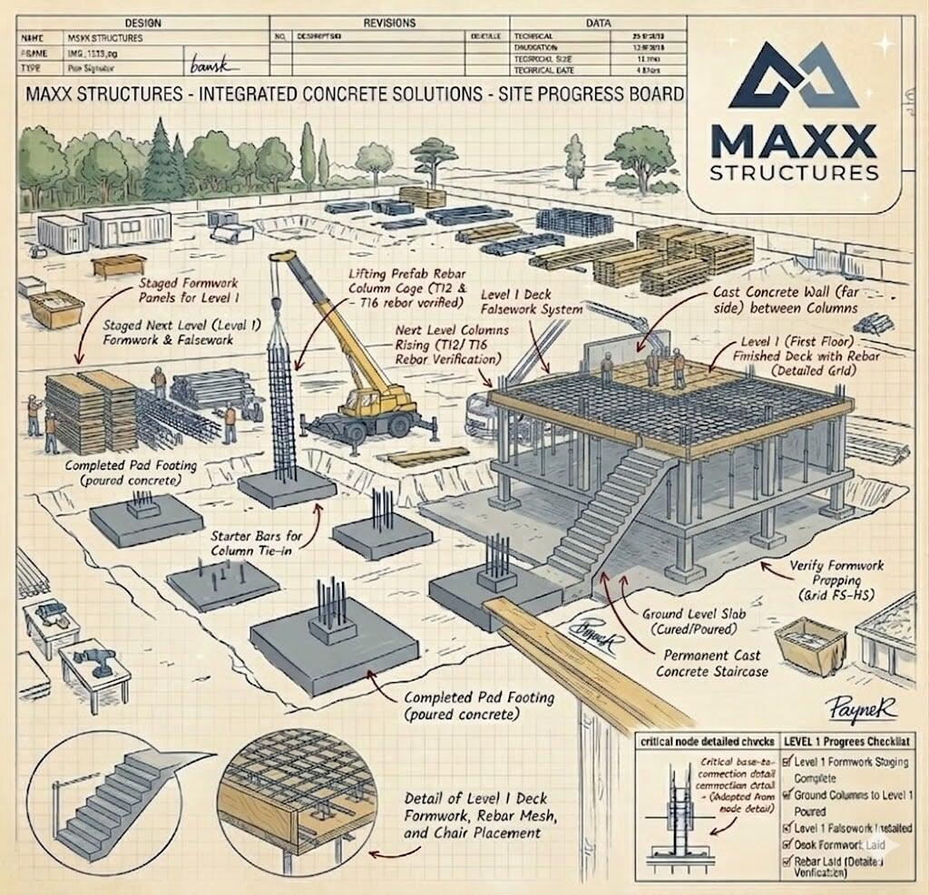 At Maxx Structures, we treat formwork as the "Negative" of the final masterpiece. By moving away from rudimentary wood construction and utilizing engineered systems, we ensure that every slab is level and every column is perfectly plumb. This precision isn't just about aesthetics—it’s about ensuring the Steel Reinforcingand Concrete work in total unison to meet the Maxx Standard.