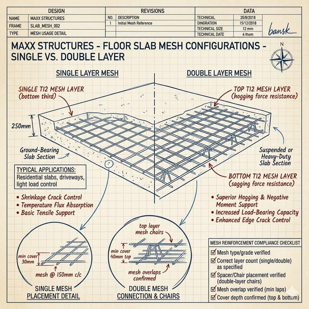 SABS Compliance: At Maxx Structures, we only utilize SABS-approved mesh (ranging from Ref 100 to Ref 395). This ensures the steel has the correct ductile properties to move with the concrete without snapping.